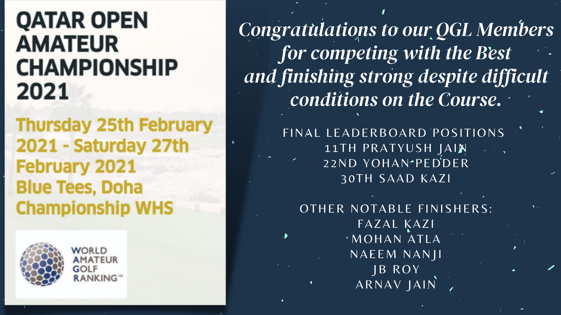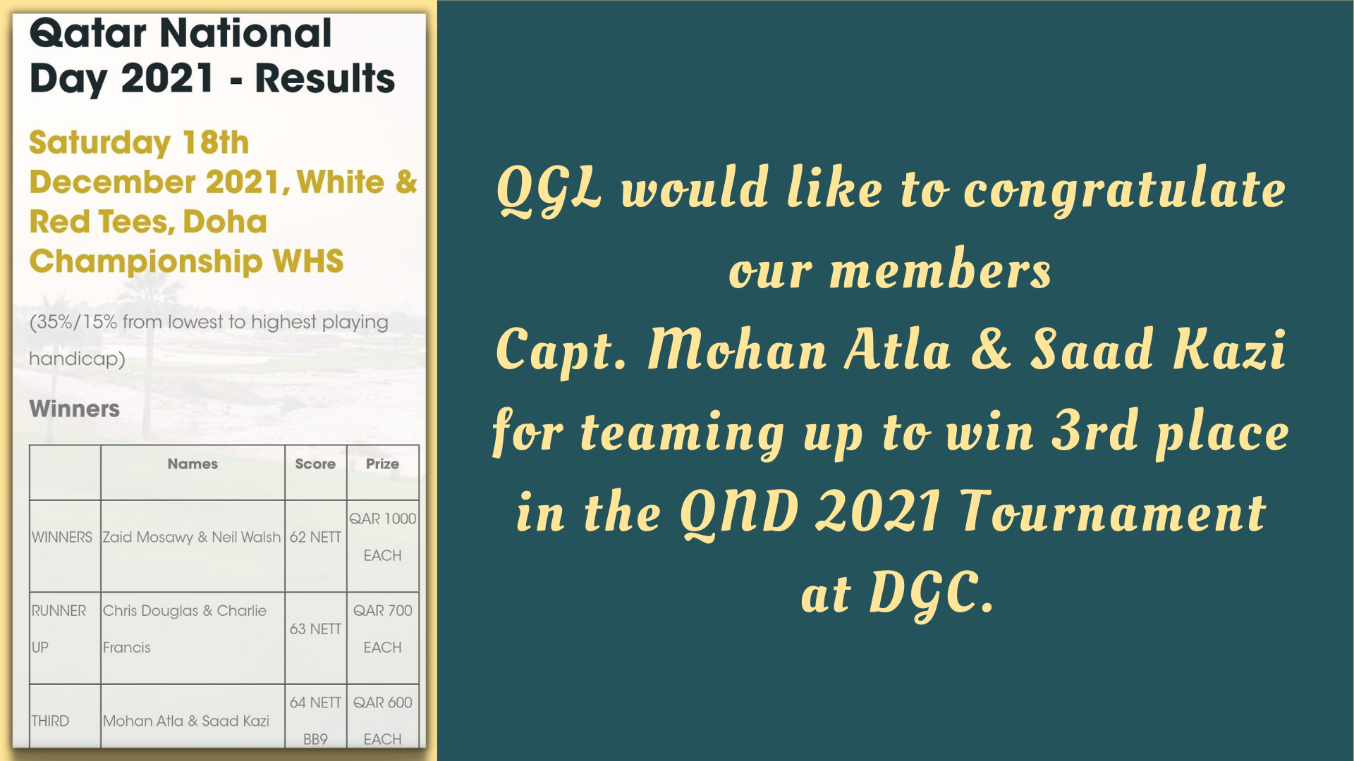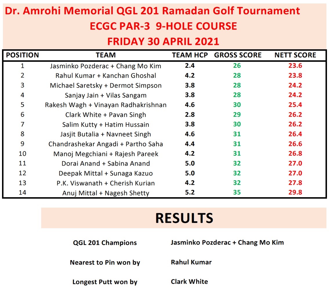 Congratulations to our QGL Members for finishing amongst the winners in their respective Division in the 2022 Ramadan Saturday Series Golf at DGC.