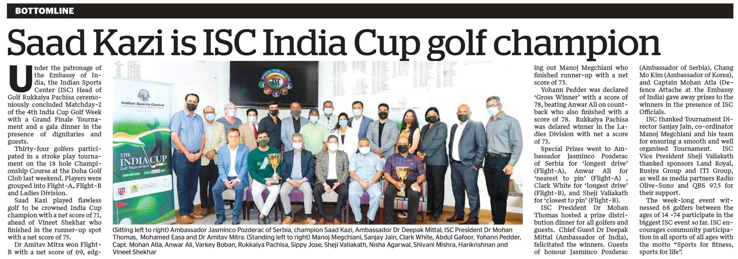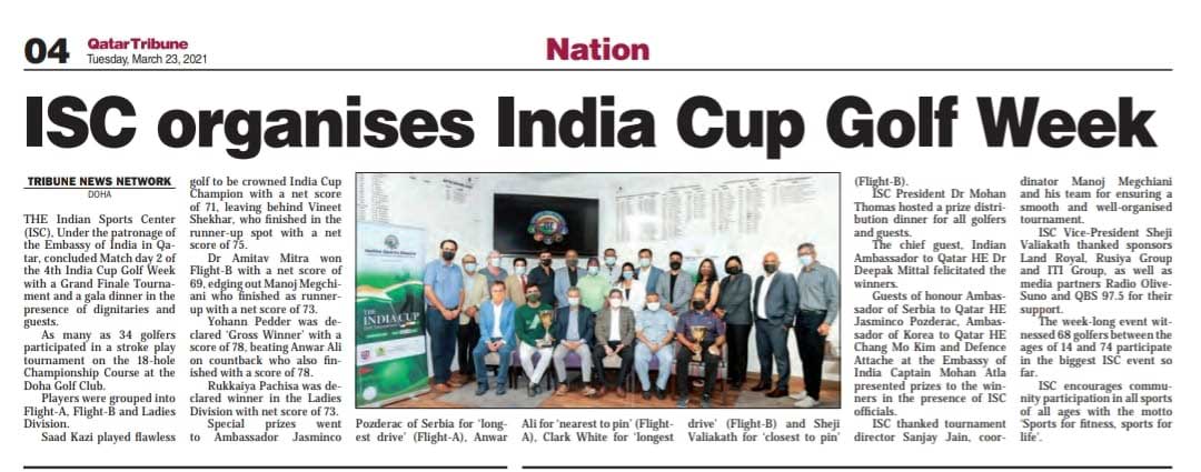 The 6th Edition of the Hydrofab India Cup Golf Tournament was held under the patronage of the Embassy of India in Qatar at the Doha Golf Club.
